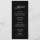 Elegante cardápio de casamento preto com texto branco. Personalize com os nomes da noiva e do noivo e sua data de casamento.