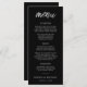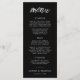 Este cartão de cardápio de casamento apresenta um roteiro moderno cativante que define um tom de na moda para a sua recepção. O design preto e branco cria um contraste ousado, enquanto os itens de menu são exibidos elegantemente em seções para facilitar a navegação. Este cartão impressiona seus convidados e faz do seu cardápio de casamento uma parte encantadora da celebração.