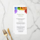 Uma variedade de flores nas cores do arco-íris faz uma bela moldura para este cartão de cardápio do buquê arco-íris. As margaridas de vermelho a roxo destacam o texto personalizável do menu de casamento para ajudar a tornar seu casamento o mais único que pode ser! Perfeito para uma primavera ou qualquer casamento com temas arco-íris! Disponível com produtos correspondentes. com