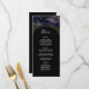 Adicione um toque de elegância cósmica à sua recepção com este Elegante Menu de Casamento Místico Celestial em preto e ouro. Apresentando um fundo preto profundo adornado com estrelas de ouro falso e sotaque celeste, este menu dá o tom para uma noite encantadora. A tipografia sofisticada e um layout gracioso destacam cada curso com estilo e clareza. Perfeito para casamentos místicos celestiais, noites estreladas, ou modernos, este menu combina mistério e luxo para complementar maravilhosamente a ambição do seu evento.