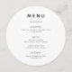 design de menu Elegante do eterno impresso em uma placa circular. Colocar no centro da placa de cada convidado. Você pode adicionar seu próprio menu de cocktail, mensagem especial ou foto no verso.