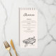 Nosso Menu de Casamento "Carro Recem casados Clássico" adiciona um toque elegante à sua recepção de casamento. O desenho de um carro "Recem casados" evoca uma sensação de romance e celebração eterno, definindo o tom para um evento memorável. Este cardápio de casamento é feito com sofisticação em mente, fazer um ajustado perfeito para qualquer celebração elegante de casamento. O desenho clássico, porém encantador, complementa uma série de temas de casamento e esquemas de cores. Com sua design limpa e atenção aos detalhes, este menu de casamento não só informa seus convidados sobre a refeição deliciosa que vem pela frente, como também adiciona um toque de classe às suas mesas de recepção. É um reflexo da sua história de amor e da jornada em que embarcaram juntos, com o carro "Recem casados" simbolizando a excitante estrada à frente.