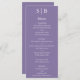 Avise aos seus hóspedes o que está no menu da sua recepção de casamento usando este clássico menu do casamento da lavanda.