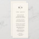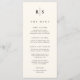 Compartilhe os detalhes do menu de recepção de casamento em estilo elegante com estes cartões de cardápio de casamento monográficos em cera de marfim quente com as suas iniciais em letras negras sérvias tradicionais, salpicadas por uma fina linha vertical. Personalize os itens de cabeçalho e menu organizados por curso.