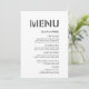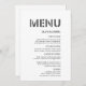 Elegante e gracioso menu de casamento simples, preto e branco.