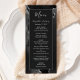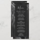 Este elegante e moderno menu de casamento mostra uma aquarela preta, a cor de fundo, aparada com brilho de prata. O texto aparece em letras elegantes de cinza prateada e fontes de impressão em um retângulo fora de preto. O design de ágata é repetido no reverso.