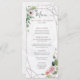 Crie seus próprios cartões de menu de casamento de estilo moderno e sofisticado com padrão geométrico rosa-ouro e ilustração floral cor-de-água rosa em um fundo texturizado de mármore.