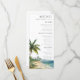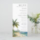 Este cardápio de casamento com cena de praia de palmeiras em aquarela moderna e elegante pode ser personalizado com suas informações em tipografia sofisticada. Criado por Thisisnotme©