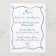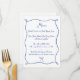 Menu Casamento com Fita e Laço Azul Francês Doodle