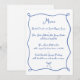 Cardápio de Casamento Azul Francês com Fita e Laço Desenhados à Mão com fonte de estilo manuscrito.
