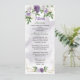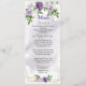 lindas flores roxas e verdes deixam cardápio romântico de casamento. Os detalhes de brilho são simulados