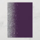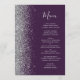 A borda esquerda deste elegante cardápio moderno de casamento apresenta uma falsa borda cintilante prateada. O texto personalizável combina o script de escrita manual de cinzas prateadas e as fontes em um fundo roxo escuro. O verso apresenta um design de brilho roxo e prateado correspondente.