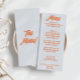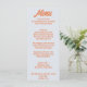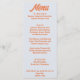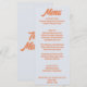 Um menu colorido de janto de casamento amarelo de pêssego. Que apresenta o design de modelo chic de fundo azul-claro-vintage e tipografia laranja-negrito. E fundo verde brilhante. Perfeito e compatível com toda a suíte.