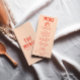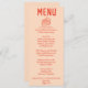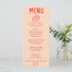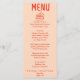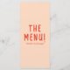Um menu janto de casamentos cor-de-pêssego moderno e fedorento. Que apresenta modelo de chic design de fundo de pêssego boho vintage e tipografia vermelha em negrito. E a mão Desenhou um pedaço de bolo e a mão escreveu um roteiro inteiro. Perfeito e compatível com toda a suíte.