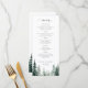 Carteira de modelo do cardápio da floresta de pinheiros da montanha moderna, russa, com tipografia chica elegante e uma paisagem natural de tendências com madeiras aquáticas.