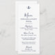 Menu Casamento de Âncora Azul Marinho Náutico Monograma