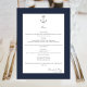 Menu Casamento de Âncora Náutica Simples | Azul Marinho