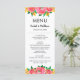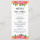 Menu Casamento de Aquarela Floral, Rosa e Amarelo