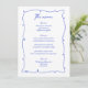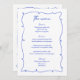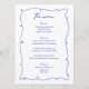 Este maravilhoso menu de casamento ostenta um design brilhante e divertido que apresenta uma letra escrita e uma borda ondulada desenhada à mão em tons impressionantes de cor azul brilhante e rosa quente. A adição perfeita a qualquer celebração de casamento divertida e vibrante, este menu pode ser personalizado para atender às suas preferências pessoais. Pode ajustar facilmente a posição do texto para evitar sobreposições e assegurar uma apresentação sem falhas do menu