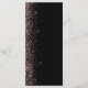 A borda esquerda deste elegante cardápio moderno de casamento apresenta um rosa dourado faux glitter design. O texto personalizável combina letra rosa pálida, letra copperplate e letra itálico num fundo preto. O verso apresenta um design de brilho preto e dourado correspondente.