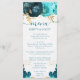Elegante Aquarela Teal e Dourada Flores design com fundo floral branco.