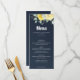 Menu Casamento de cor azul-d-água com rosas amarelas El