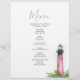 Projetado para coordenar com a minha coleção de farol Júpiter de aquarela este menu de janto costeiro pode ser personalizado com os seus nomes e opções de refeições. A folha 8,5 x 11 reverte para uma cor verde estável. Perfeito para praia e casamentos náuticos. Para ver toda a suíte de papelaria de casamento visite www.zazzle.com/dotellabelle