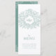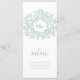 Cinza de sábio verde e janto de casamento branco. Edite este menu de 4 cursos com o seu próprio texto de opção de refeição. Folhas simples mas modernas desenhadas à mão e design monograma. © Original hand botanical desenho e design por Sarah Trett para www.mylittleedenweddings.com exclusivamente em zazzle.