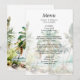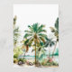 Este elegante e belo cardápio de casamentos de aquarelas mostra uma praia e palmeiras. O texto combina o script manuscrito e as fontes sans serif para uma aparência na moda e moderna. Isto é perfeito para uma praia de verão ou um casamento de destino tropical.
