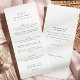 Menu de Casamento de Script Branco e preto Elegante Duplo Lado com a mensagem traseira no cartão