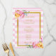 Menu Casamento de Flor de Quadro Dourado com Faixa Rosa
