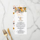 Abraçar o calor do sol do país com o nosso menu janto de casamento cor de laranja boho-rústico, adornada com lindos girassóis, folhas verdes e ramos vermelhos castanhos. Perfeito para o casal de espírito livre. com uma tipografia de script escovado em um simples fundo branco editável.