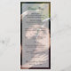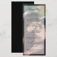 Cardápio de casamento de foto moderno com uma sobreposição transparente e seu cardápio em texto preto. O cabeçalho e seus nomes estão em uma letra cursiva elegante. Um design sofisticado e elegante que combina com qualquer estilo de casamento.