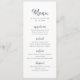 Os menus modernos de casamento minimalistas apresentam um roteiro arrojado manuscrito em preto e branco, simples e na moda. Personalize-o com a cor da fonte escolhida.