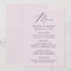 Menu de casamento simples e elegante com "Menu" exibido em um roteiro preto moderno com fundo roxo lavanda ou cor de sua escolha. Personalize o menu de casamento da lavanda com seus nomes, data de casamento e informações do menu. Projetado para coordenar com a nossa coleção de casamento do Modern Elegance.