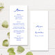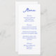 Este maravilhoso menu de casamento ostenta uma letra manuscrita, brilhante e divertida, em tons brilhantes de azul brilhante. A adição perfeita a qualquer celebração de casamento divertida e vibrante, este menu pode ser personalizado para atender às suas preferências pessoais.