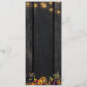 Menu de recepção de casamento de texto editável com botânicos de outono rústicos em um fundo de madeira marrom-escura com luzes de cordas. Ideal para seu outono cair num elegante campo rústico no quintal ou casamento de fazendas.