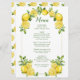 Menu de casamento com limões e verde. Perfeito para um casamento primavera de verão. As palavras podem ser alteradas para se adequarem aos seus próprios detalhes ou requisitos