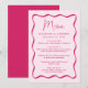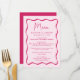 Adicione um toque de vintage à sua festa de noivado, janto de ensaio ou recepção de casamento com este menu de casamento do Quadro de Ondas Moderno Rosa. O design exibe os nomes do casal, a data do casamento e as opções de menu em letras negrito rosa, cercadas por uma borda escura de quadro ondulado rosa contra um fundo de rosa claro. O menu retro do casamento coordena-se com a nossa coleção de casamento Modern Wavy Frame.