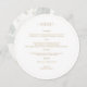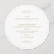 Elegante e chic. Este adorável cardápio de casamento apresenta uma ilustração aquosa de flores florescentes frescas com uma camada branca macia e sonhadora. O texto inclui uma fonte contemporânea em ouro. Casal na parte de trás.