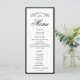 Eleve a sua recepção de casamento com este Menu de Casamento do Monograma do Elegante Botânico Preto e Branco e do Pecado Botânico, projetado para impressionar com a sofisticação do eterno. Com uma paleta de cores escura e branca elegante, este menu mostra o seu monograma personalizado envolto numa delicada crista botânica no topo, acrescentando um toque personalizado e refinado às suas definições de mesa.