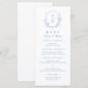 Iniciais monogramas emolduradas por folhas botânicas elegantes e ilustradas à mão, detalhes cardápicos em caracteres elegantes e clássicos, simples e luxuosos. Excelente azul e cardápio branco para casamento clássico moderno, casamento formal simples, casamento botânico elegante. Veja todas as peças correspondentes na coleção.