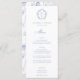 Monograma de Crest Azul de Regência Vintage, menu de casamento. Vintage inspirou a crista barroca com a coordenação da tipografia azul. Recursos, elegante padrão floral do Jardim Chinoiserie com apoio.