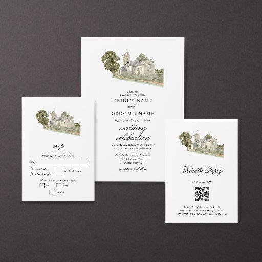 Watercolor Church Traditional Monogram WeddingCriado por iDove Design