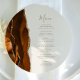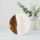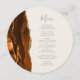 A borda esquerda deste elegante cardápio moderno de casamento mostra uma cor de água laranja queimada, aparada com uma falsa brilha de ouro. O texto personalizável combina o script de escrita manual com cores douradas e as fontes de impressão em fundo de marfim. O verso apresenta uma design de cor laranja queimada e dourada.