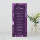 Este elegante e moderno menu de casamento mostra uma cor d'água roxa de fundo moldada com brilho de prata. O texto aparece em letras elegantes de cinza prateada e fontes sans serif em um retângulo de ameixa. O design de ágata é repetido no reverso.