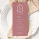 Este elegante design de cardápio de casamento inspirado em vintage apresenta um par de iniciais de monograma branco em letra serif aberta acima e abaixo de uma linha divisória e rodeado por uma crista botânica de arte em uma camada poeirenta de rosa. A parte traseira da placa é um rosa poeirento sólido.
