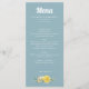 Menu folha única, tamanho: 10,16 x 22,86 cm, papel: Semi-brilho Básico