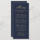 Menu Casamento de Script Dourado Azul do Marinho Elegan