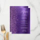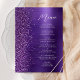 Este elegante cardápio moderno de casamento apresenta uma falsa borda de brilho de diamante em um fundo de metal vermelho roxo. O texto personalizável combina o script branco de escrita manual e as fontes sans serif. O metal escovado roxo e o design brilhante são repetidos no verso.